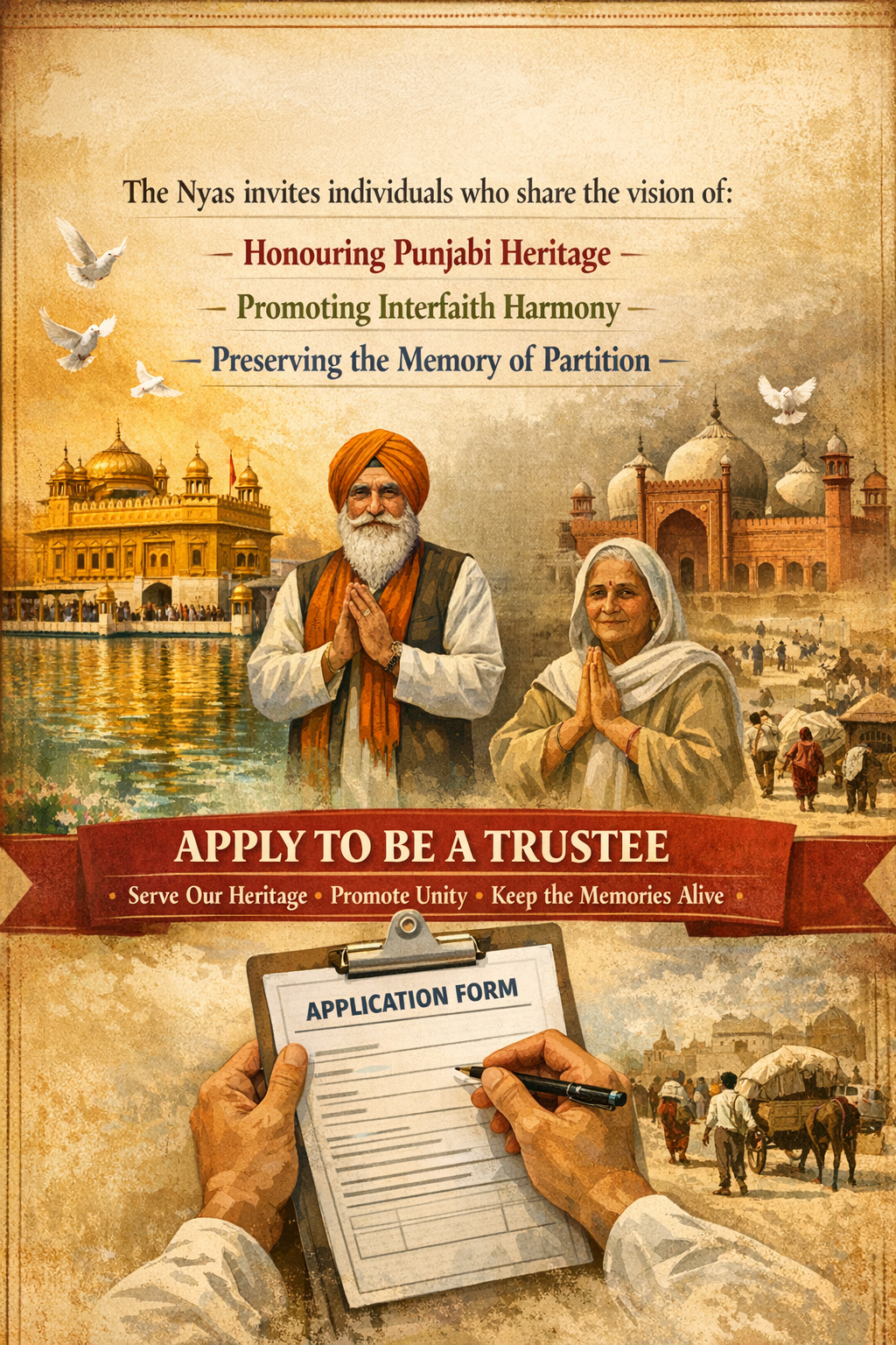 The Nyas invites individuals who share the vision of honouring Punjabi heritage, promoting interfaith harmony, and preserving the memory of Partition to apply for a position as trustee.